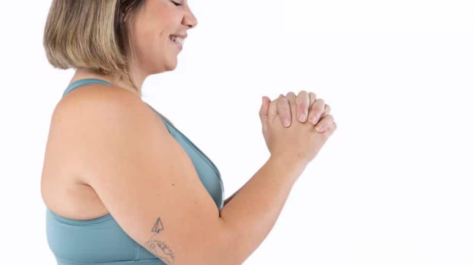 आपके ट्राइसेप्स, कलाई और कंधों के लिए एक शक्तिशाली मुद्रा। यह छाती और रीढ़ में लचीलेपन में भी सुधार करता है।
