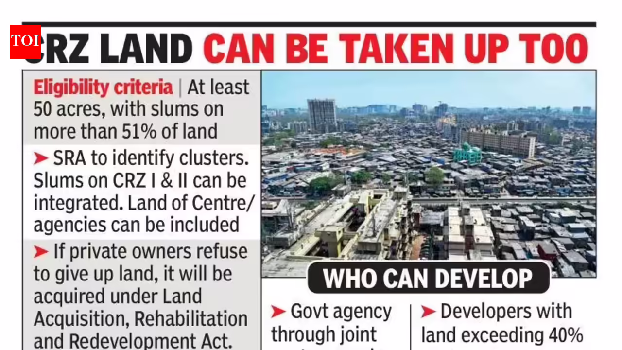 मुंबई: गिल्बर्ट हिल के आसपास अंधेरी पश्चिम में 100 एकड़ के भूखंड के साथ, स्लम पुनर्वास प्राधिकरण (एसआरए) राज्य सरकार की हाल ही में शुरू की गई स्लम क्लस्टर पुनर्विकास योजना के तहत मुंबई में 18 परियोजनाएं शुरू करने के लिए तैयार है।परियोजनाओं के लिए कम से कम 50 एकड़ के क्लस्टर लिए जाएंगे, जहां 51% से अधिक क्षेत्र पर झुग्गियों का कब्जा है। यहां तक कि तटीय विनियमन क्षेत्र I और II की मलिन बस्तियों को भी एकीकृत किया जा सकता है। योजना के तहत गैर-मलिन बस्तियों, पुरानी और जीर्ण-शीर्ण इमारतों, किरायेदारों के कब्जे वाली इमारतों, निर्माण के लिए अनुपयुक्त खाली भूमि और कुछ निजी भवनों के साथ-साथ मलिन बस्तियों का पुनर्विकास किया जा सकता है। अंधेरी भूमि में लगभग 14,000 झोपड़ियाँ और कई आवासीय इमारतें हैं। एसआरए ने इसके पुनर्विकास के लिए निविदाएं जारी की हैं। अन्य परियोजनाओं के लिए साइटों में मानखुर्द, गोवंडी, सायन, वडाला, विक्रोली पार्क साइट, गोरेगांव पश्चिम, कांदिवली पश्चिम और बोरीवली पूर्व शामिल हैं। प्लॉट का सीमांकन फाइनल होने के बाद उनके लिए टेंडर जारी किए जाएंगे। एसआरए के सीईओ महिंद्रा कल्याणकर ने कहा, “शहरी नियोजन के संदर्भ में पुनर्विकास एक एकीकृत और टिकाऊ तरीके से किया जाएगा ताकि सभी नागरिक सुविधाएं आधुनिक और वैज्ञानिक तरीके से विकसित की जा सकें और जीवन की गुणवत्ता में सुधार हो… योजना के प्रावधानों के अनुसार, एसआरए नोडल एजेंसी होगी।” उन्होंने कहा कि एसआरए द्वारा पहचाने गए स्लम समूहों को एक उच्च-शक्ति समिति द्वारा अनुमोदित करना होगा, जिसे अभी स्थापित किया जाना है और इसका नेतृत्व अतिरिक्त मुख्य सचिव, आवास और फिर राज्य सरकार द्वारा किया जाएगा। अधिकारी ने कहा, “पुनर्विकास कार्य संयुक्त उद्यम मोड के माध्यम से कार्यान्वयन के लिए एक सरकारी एजेंसी को दिया जाएगा, या एक निजी डेवलपर को निविदा प्रक्रिया के माध्यम से नियुक्त किया जा सकता है, या यदि किसी डेवलपर के पास ऐसे समूहों के कुल क्षेत्रफल का 40% से अधिक क्षेत्र है, तो डेवलपर के माध्यम से योजना को लागू करने का निर्णय राज्य सरकार की पूर्व मंजूरी के साथ उच्च-शक्ति समिति की सिफारिश पर लिया जा सकता है।” यदि कोई भूमि केंद्र सरकार या उसके उपक्रमों की है, तो उसे परियोजना में शामिल किया जा सकता है, बशर्ते वे इसके लिए अपनी सहमति दें। एक बार मंजूरी मिल जाने के बाद, निजी भूमि मालिकों को कुल भूमि मूल्य के 50% पर, टाउन प्लानिंग योजना के आधार पर मूल्यांकित समकक्ष फ्लोर स्पेस इंडेक्स का एक विकसित भूखंड प्रदान किया जाएगा। अधिकारी ने कहा, “यदि निजी भूमि मालिक प्रस्ताव को अस्वीकार करते हैं, तो भूमि अधिग्रहण, पुनर्वास और पुनर्विकास अधिनियम, 2013 के अनुसार भूमि का अधिग्रहण 