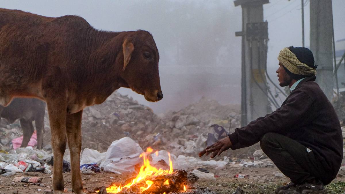 छवि स्रोत: पीटीआई गुड़गांव में ठंड से राहत पाने के लिए आग के सामने हाथ सेंकटा हुआ स्पेशलिस्ट नई दिल्ली…