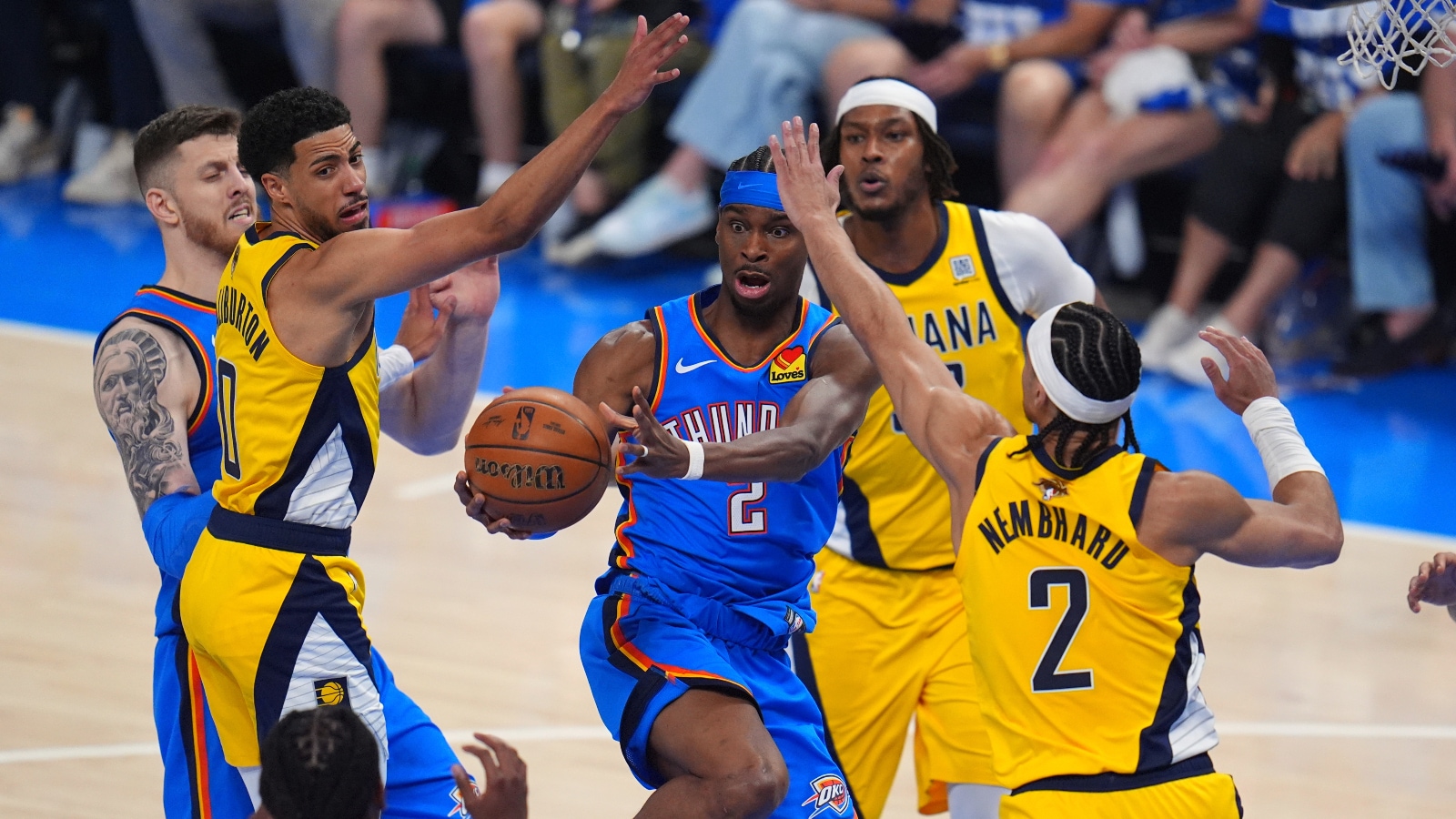2017 में वापस, जब शई गिलगियस-अलेक्जेंडर केंटकी में दाखिला लेने वाले थे और टायरेस हैलिबर्टन विस्कॉन्सिन में हाई स्कूल के अपने वरिष्ठ वर्ष की तैयारी कर रहे थे, इंडियाना पेसर्स ने पॉल जॉर्ज को ओक्लाहोमा सिटी थंडर में व्यापार किया, बदले में डोमेंटास सबोनिस का अधिग्रहण किया। 2019 में, थंडर ने जॉर्ज को लॉस एंजिल्स क्लिपर्स को एक पैकेज के लिए कारोबार किया जिसमें गिलगस-अलेक्जेंडर शामिल थे। बाद में, 2022 में, पेसर्स ने एक पैकेज के लिए सैक्रामेंटो किंग्स में सबोनिस का कारोबार किया जिसमें हैलिबर्टन शामिल थे।