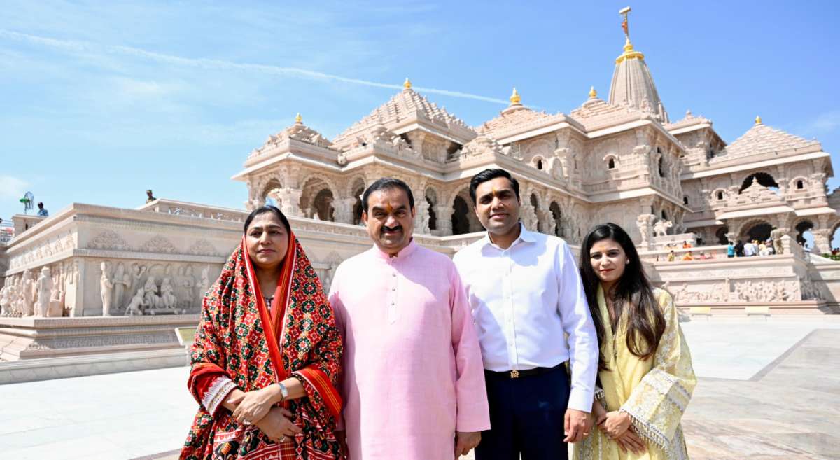 अडानी ग्रुप के चेयरमैन गौतम अडानी ने गुरुवार को अपनी पत्नी प्रीति अडानी, बड़े बेटे करण अडानी और बहू परिधि अडानी के साथ अयोध्या में राम मंदिर का दौरा किया। संस्थागत बातचीत के लिए श्री निशुलक गुरुकुल महाविद्यालय जाने से पहले परिवार ने मंदिर में प्रार्थना की। भगवान राम के जन्मस्थान पर स्थित राम मंदिर आस्था, भक्ति और सभ्यतागत निरंतरता का प्रतीक है।