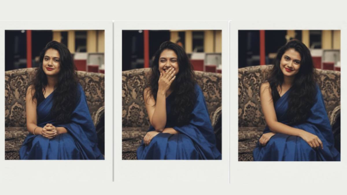 संकेत 1: ‘चेहरा मत बदलें 4 पोलरॉइड स्टाइल प्रोट्रेट्स, सफेद फ्रेम, रेट्रो फिल्म लुक। नीली साड़ी, लाल लिपस्टिक, बिखरे लहराते बाल, स्पष्ट मुद्राएं, शर्मीली मुस्कान, चंचल हंसी, एक सोफे पर बैठना।’
