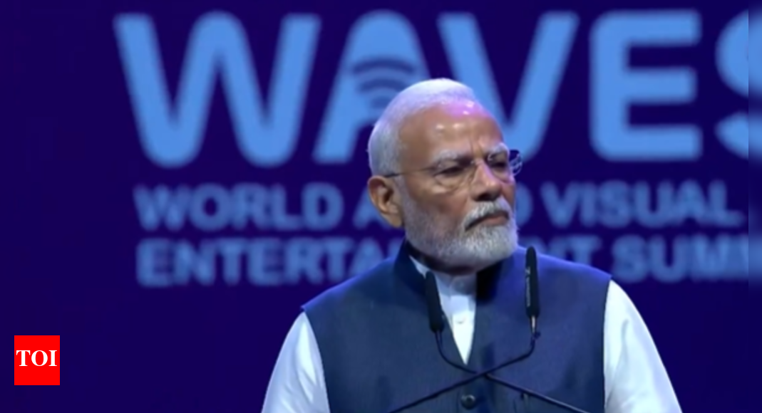 नई दिल्ली: प्रधानमंत्री नरेंद्र मोदी ने गुरुवार को लॉन्च किया विश्व ऑडियो दृश्य और मनोरंजन शिखर सम्मेलन (वेव्स) 2025 मुंबई के जियो वर्ल्ड कन्वेंशन सेंटर में, इसे एक परिवर्तनकारी पहल के रूप में वर्णित करता है जो एक छत के नीचे वैश्विक कहानीकारों, इनोवेटर्स और नीति निर्माताओं को एक साथ लाता है।