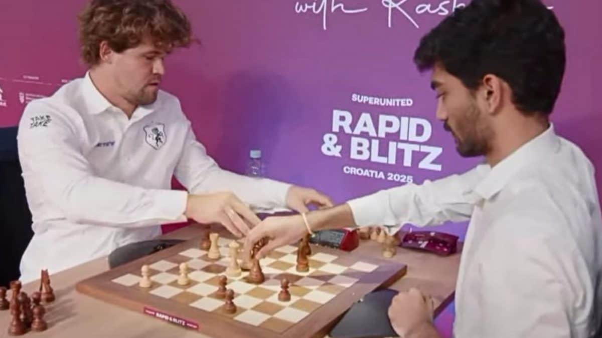 डिफेंडिंग वर्ल्ड चैंपियन डी। गुकेश ने गुरुवार को क्रोएशिया के ज़ाग्रेब में आयोजित ग्रैंड शतरंज दौरे के छठे दौर में वर्ल्ड नंबर 1 मैग्नस कार्लसेन को हराकर गुरुवार को शानदार प्रदर्शन किया।