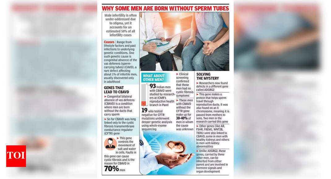 मुंबई: वर्षों के लिए, पुरुष बांझपन का एक दुर्लभ रूप, जिसमें पुरुष शुक्राणु को ले जाने वाली ट्यूबों के बिना पैदा होते हैं, को सिस्टिक फाइब्रोसिस से बंधे एकल जीन पर दोषी ठहराया गया था। अब, मुंबई के शोधकर्ताओं ने भारतीय पुरुषों में जीनों के एक व्यापक सेट की पहचान की है, जिसमें माताओं से लेकर बेटों तक एक भी शामिल है, जो इस स्थिति को समझाने में मदद करते हैं, जिसे वास डेफेरेंस (CAVD) की जन्मजात अनुपस्थिति कहा जाता है।हालांकि अनुसंधान ने 2019 में गति प्राप्त की, इसकी जड़ें 2011 तक वापस फैल गईं। निष्कर्ष न केवल स्थिति की बेहतर समझ का वादा करते हैं, बल्कि जोड़ों के लिए अधिक सूचित उपचार विकल्प और आनुवंशिक परामर्श भी। Parel के ICMR-NATIONAL INSTITUTE फॉर रिसर्च इन रिप्रोडक्टिव हेल्थ (ICMR-NIRCH) से ताजा, प्रजनन विज्ञान में इस सप्ताह के शुरू में प्रकाशित एक पेपर ने बताया कि अब तक, CFTR जीन (सिस्टिक फाइब्रोसिस ट्रांसमेम्ब्रेनर कंडक्टेंस नियामक में उत्परिवर्तन) में म्यूटेशन इन वास डेफेरेंस (CBAVD) के जन्मजात द्विपक्षीय अनुपस्थिति को लगभग 70% में समझाते हैं। लेकिन अब तक, शेष 30-40% का कोई स्पष्ट आनुवंशिक स्पष्टीकरण नहीं था। जब केवल एक ट्यूब गायब हो जाता है, तो स्थिति को वास डेफेरेंस (CUAVD) की जन्मजात एकतरफा अनुपस्थिति कहा जाता है। यह कभी -कभी गुर्दे की असामान्यताओं के साथ होता है, लेकिन दुर्लभ है, 0.04% पुरुष बांझपन के मामलों के लिए लेखांकन।जब दोनों ट्यूब गायब हो जाते हैं, तो CBAVD 2-3% भारतीय पुरुष बांझपन के मामलों और 25% तक के लोगों के लिए ऑब्सट्रक्टिव एज़ोस्पर्मिया (वीर्य में कोई शुक्राणु नहीं) के लिए खाता है। इन जोड़ों के लिए, आईवीएफ एकमात्र विकल्प है। सायन अस्पताल के एक यूरोलॉजिस्ट डॉ। प्रकाश पावर ने कहा, “कलंक बांझपन से जुड़ा हुआ है। महिलाओं को अक्सर दोषी ठहराया जाता है, भले ही जैविक मुद्दा आदमी के साथ निहित हो।” “पुरुष बांझपन एक बढ़ता हुआ वैश्विक मुद्दा है। उच्च बोझ वाले तृतीयक देखभाल अस्पतालों में सालाना सीबीएवीडी के कुछ मामले देखते हैं।“अध्ययन में 93 पुरुषों में से, 19 ने ज्ञात CFTR जीन के लिए नकारात्मक परीक्षण किया था। इन 19 नमूनों पर संपूर्ण-एक्सोम अनुक्रमण का उपयोग करते हुए, शोधकर्ताओं ने ADGRG2 नामक एक नए एक्स-लिंक्ड जीन की खोज की, जिसे माताओं से बेटों तक पारित किया जा सकता है और यह CBAVD से जुड़ा हुआ है। यह जीन अध्ययन किए गए 19 में से दो पुरुषों में पाया गया था। “यूरोप और अन्य देशों में अनुसंधान समूहों ने भी ADGRG2 में इसी तरह के रोगजनक वेरिएंट की सूचना दी है। हमारे अध्ययन को महत्वपूर्ण बनाता है कि यह पहली बार है जब ADGRG2 को भारतीय पुरुषों में बांझपन के साथ पहचाना गया है,” ICMR-NIRCH के वैज्ञानिक डॉ। राहुल गजभाई ने कहा। उन्होंने कहा कि निष्कर्षों के प्रकाश में, CBAVD की आनु