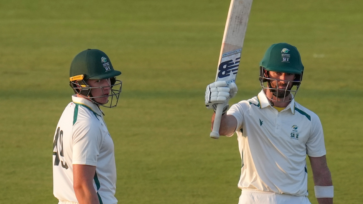 हरमन को खोने के बावजूद, मेहमान टीम ने अपनी स्कोरिंग दर नहीं गिराई। जुबैर हमजा ने 88 गेंदों में नौ चौकों और तीन छक्कों की मदद से 77 रनों की मनोरंजक पारी खेली, जबकि टेस्ट कप्तान तेम्बा बावुमा ने सावधानी बरतते हुए 101 गेंदों में 59 रन बनाए।