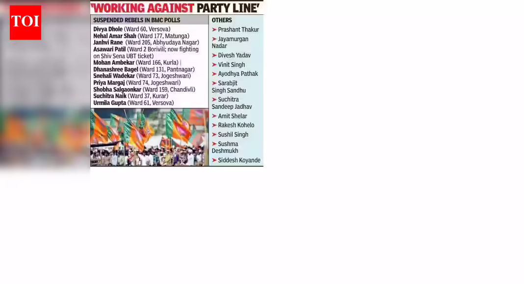 मुंबई: बीजेपी ने गुरुवार को पूर्व नगरसेवकों और बागी उम्मीदवारों के रूप में बीएमसी चुनाव लड़ने वाले 26 पदाधिकारियों को…