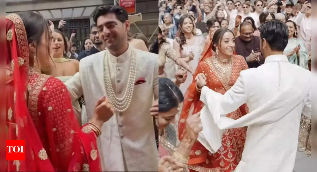 एक सब्यसाची-क्लैड दुल्हन ने वॉल स्ट्रीट को एक ठहराव में लाया क्योंकि उसके 400-व्यक्ति बरात ने न्यूयॉर्क शहर को भारतीय…