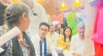 Trinamool Congress general secretary Abhishek Banerjee along with party leaders and workers sat on a dharna at Delhi’s Rajghat on…