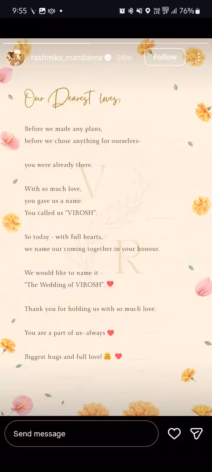 अपना संदेश साझा करते हुए जोड़े ने लिखा: