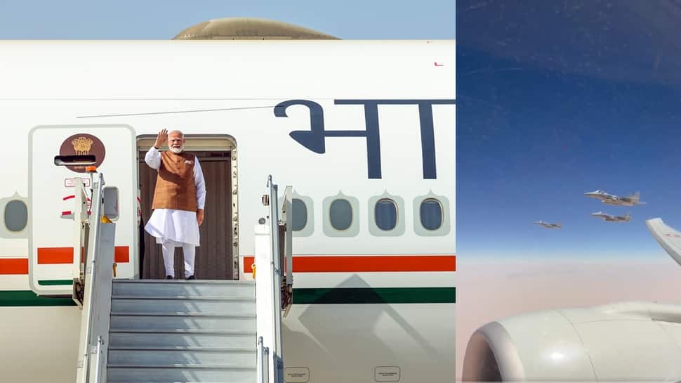 नई दिल्ली: एक विशेष इशारे में, प्रधानमंत्री नरेंद्र मोदी के विमान को सऊदी अरब के एफ -15 जेट्स द्वारा बचाया गया था, जब उनकी विशेष उड़ान ने मंगलवार को खाड़ी राष्ट्र के हवाई क्षेत्र में प्रवेश किया, अधिकारियों ने कहा। मोदी सऊदी अरब की दो दिवसीय यात्रा का भुगतान कर रहे हैं। विदेश मंत्रालय (MEA) ने मोदी के विमान को एस्कॉर्ट करने वाले सऊदी जेट्स का एक वीडियो भी जारी किया।