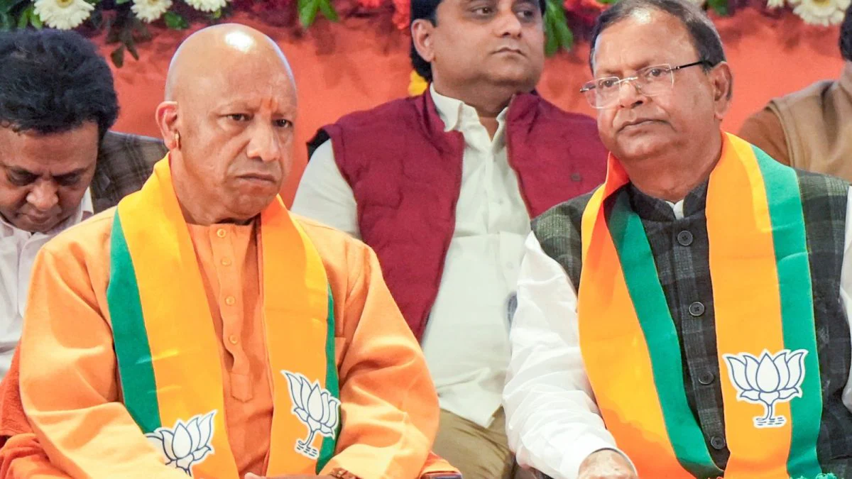 भाजपा के प्रदेश अध्यक्ष पंकज चौधरी (दाएं) ने सीएम योगी आदित्यनाथ से मुलाकात की, इस मुलाकात को राजनीतिक हलकों में व्यापक रूप से इस मुलाकात के नतीजों से जोड़कर देखा जा रहा है। (पीटीआई फ़ाइल)
