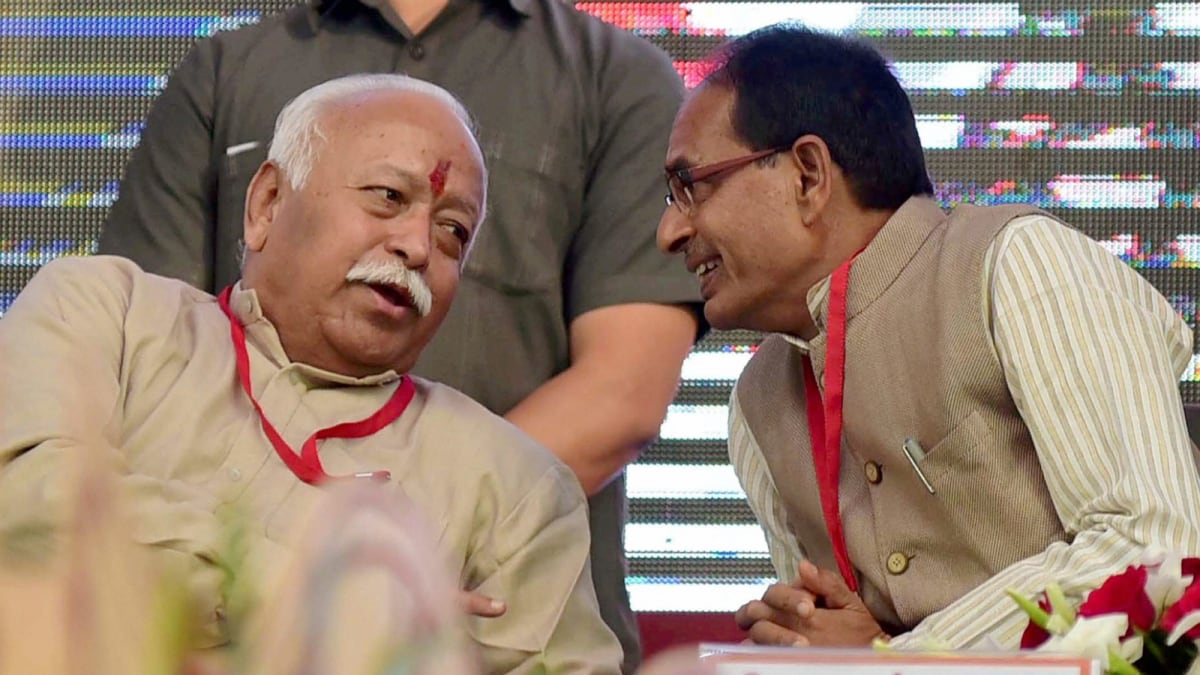 आरएसएस प्रमुख मोहन भागवत और केंद्रीय मंत्री शिवराज सिंह चौहान। (छवि: पीटीआई फ़ाइल)